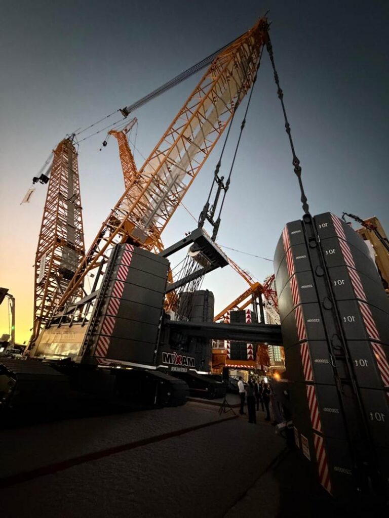 La grúa sobre orugas LR 1400.1 SX se presenta por primera vez con equipo de derrick y contrapeso suspendido. Para operaciones de elevación especialmente pesadas y combinaciones largas de pluma, las capacidades de elevación pueden mejorarse y el campo de aplicación ampliarse mediante el uso del equipo de derrick. El ajuste fino del contrapeso suspendido mediante VarioTray y el sistema de control de posición hacen que la grúa sea segura y flexible en su uso.