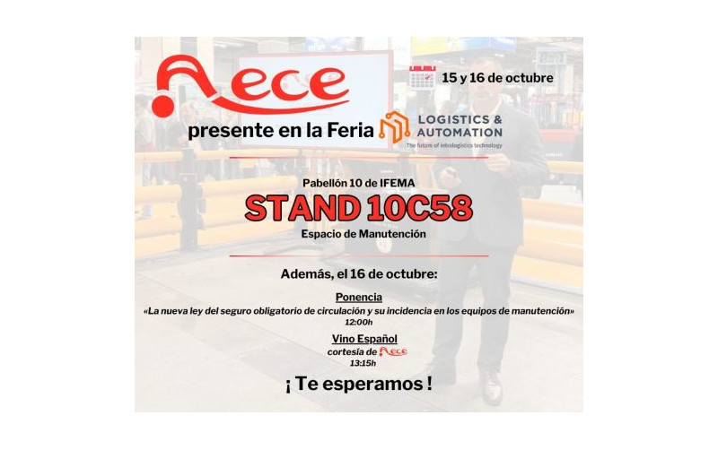 Al igual que el año pasado, AECE participará en la feria y lo hará con una ponencia sobre «La nueva ley del seguro obligatorio de circulación y su incidencia en los equipos de manutención» impartida por el Secretario General de AECE, Juan Pablo Viniegra. Será el próximo 16 de octubre a las 12 horas.