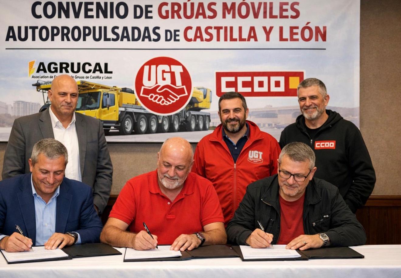 La Asociación de Empresas de Grúas Móviles Autopropulsadas de Castilla y León (AGRUCAL), junto con las organizaciones sindicales UGT y CC.OO., firmaron el día 24 de marzo el nuevo Convenio Colectivo del sector de grúas móviles autopropulsadas en la Comunidad.