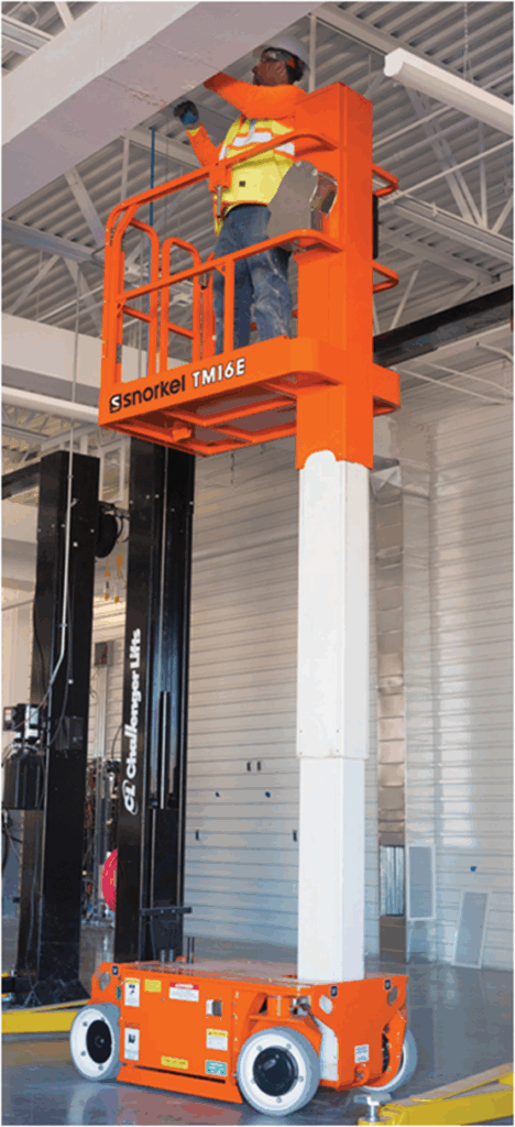 En la categoría de plataformas de acceso compacto, Ahern Ibérica también ha presentado el Snorkel TM16E, un mástil vertical eléctrico que combina practicidad con rendimiento sólido: