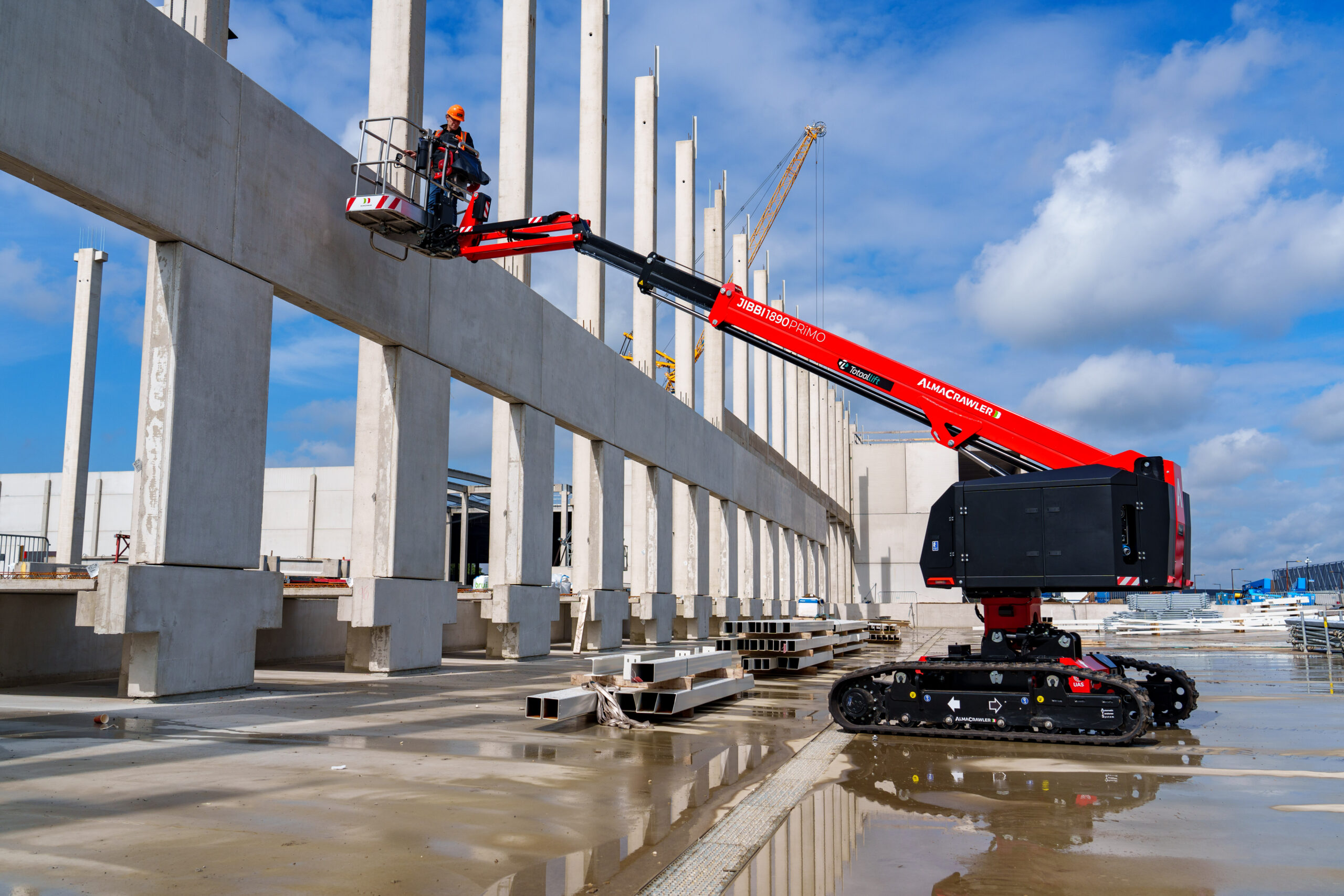 El JIBBI 1890 EVO de AlmaCrawler es la única plataforma telescópica sobre orugas del mercado capaz de operar de forma segura y productiva en pendientes de hasta ±15,6°, gracias a su exclusivo sistema de auto-nivelación dinámica activa, sin necesidad de estabilizadores. Con una altura de trabajo de 17,9 m, un alcance frontal de 10,3 m y una capacidad de 250 kg en toda la envolvente, este equipo ofrece soluciones únicas para aplicaciones donde las plataformas convencionales no pueden operar.