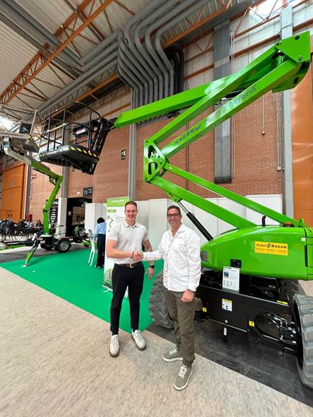 Víctor Sánchez (Niftylift) y Rubén Saseta (Alquisagar) junto a su nueva Nifty HR17 Hybrid
