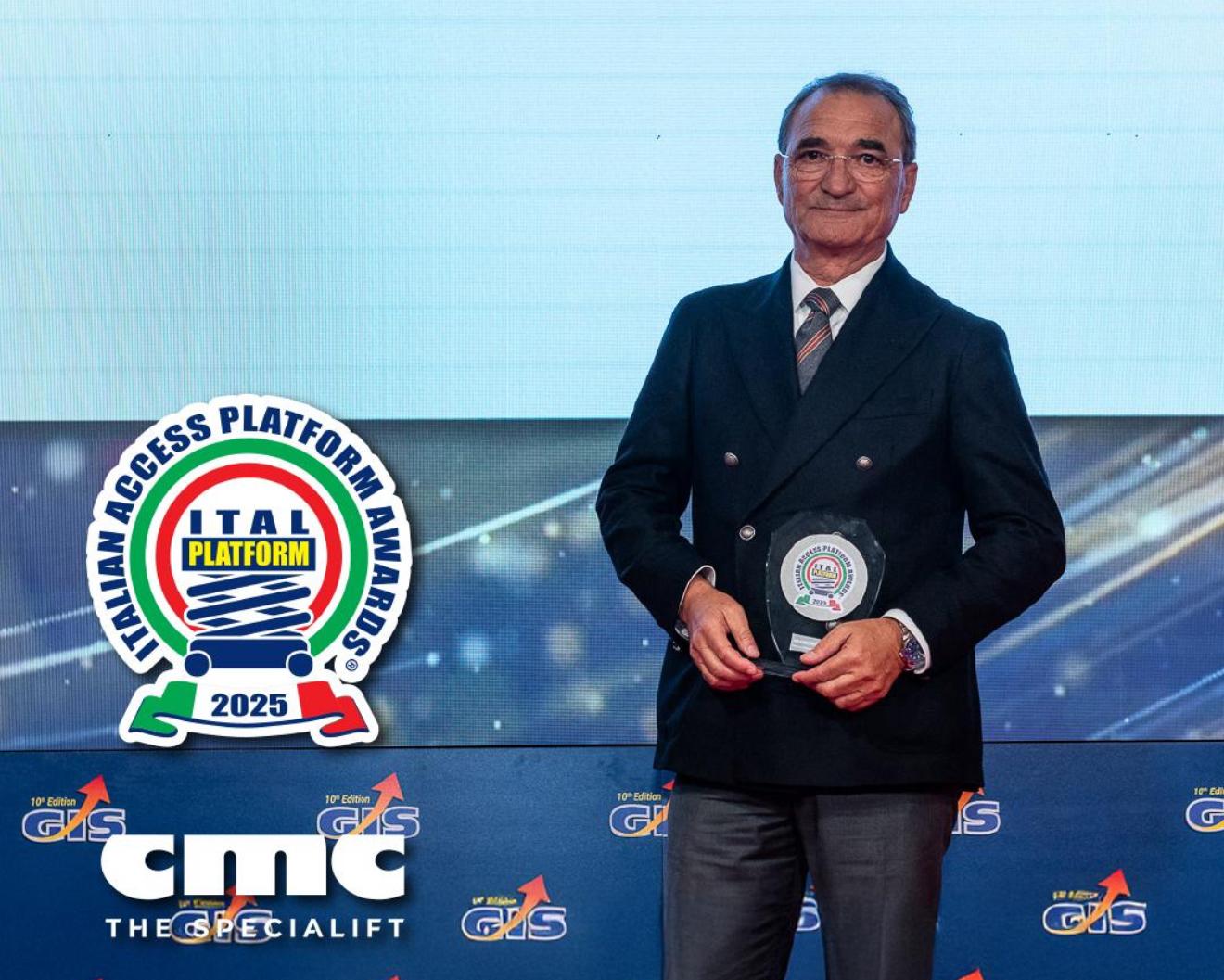 Durante la feria GIS, el evento italiano dedicado al sector de elevación, Carlo Mastrogiacomo, fundador de CMC, fue galardonado con el prestigioso “Premio alla Carriera” Lifetime Achievement Award, un merecido reconocimiento a una trayectoria empresarial extraordinaria.