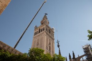 La empresa Grúas Lozano ha llevado a cabo una maniobra de gran precisión en uno de los enclaves patrimoniales más emblemáticos de Sevilla: el descenso…