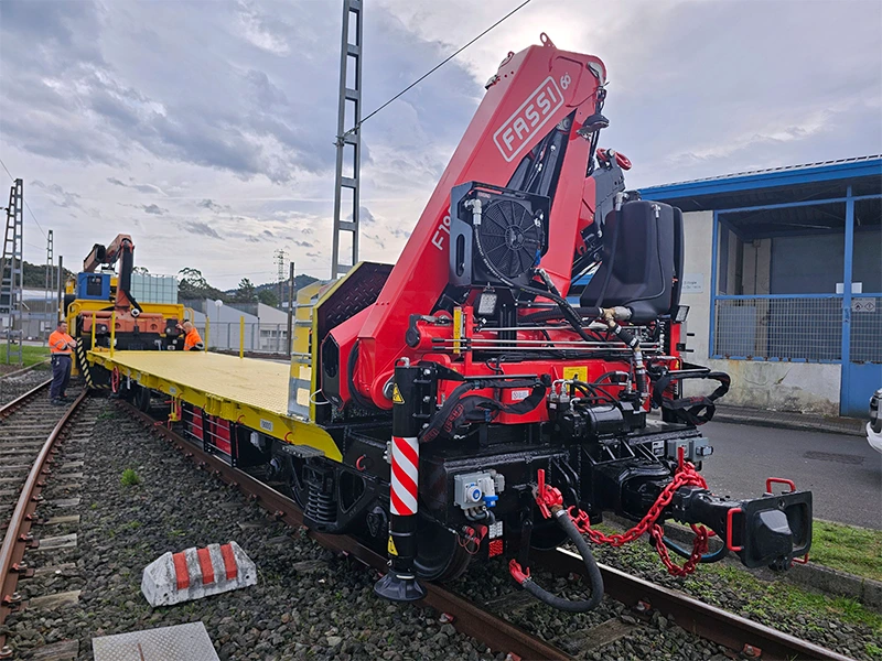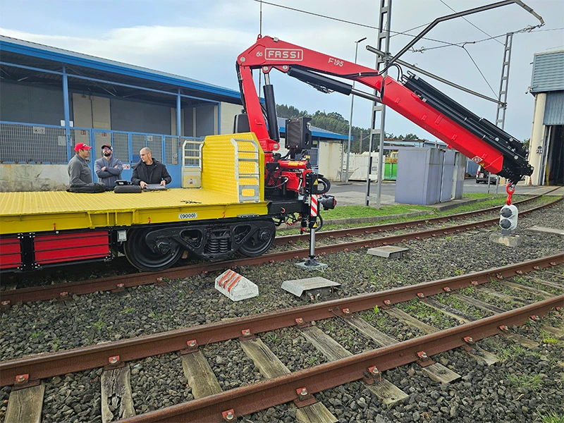 El equipo ha sido instalado sobre un vagón de metro de los años 90 completamente restaurado. Cogrúas, representante de Transgrúas en Asturias, no solo suministró la grúa, sino que se encargó de todo el desarrollo de integración: diseño y fabricación de un falso bastidor, fijación al vagón y adaptación estructural para garantizar estabilidad, seguridad y prestaciones.