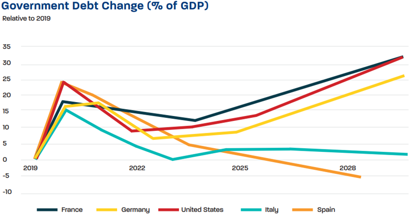 El aumento de los tipos de interés ha puesto de relieve la vulnerabilidad asociada a los elevados niveles de deuda pública. Aunque no se trata de un riesgo inmediato, la necesidad de destinar más recursos al pago de intereses reducirá el margen de maniobra de los gobiernos en los próximos años. Esta dinámica podría traducirse en mayores presiones fiscales y en una menor capacidad de apoyo a la actividad económica.