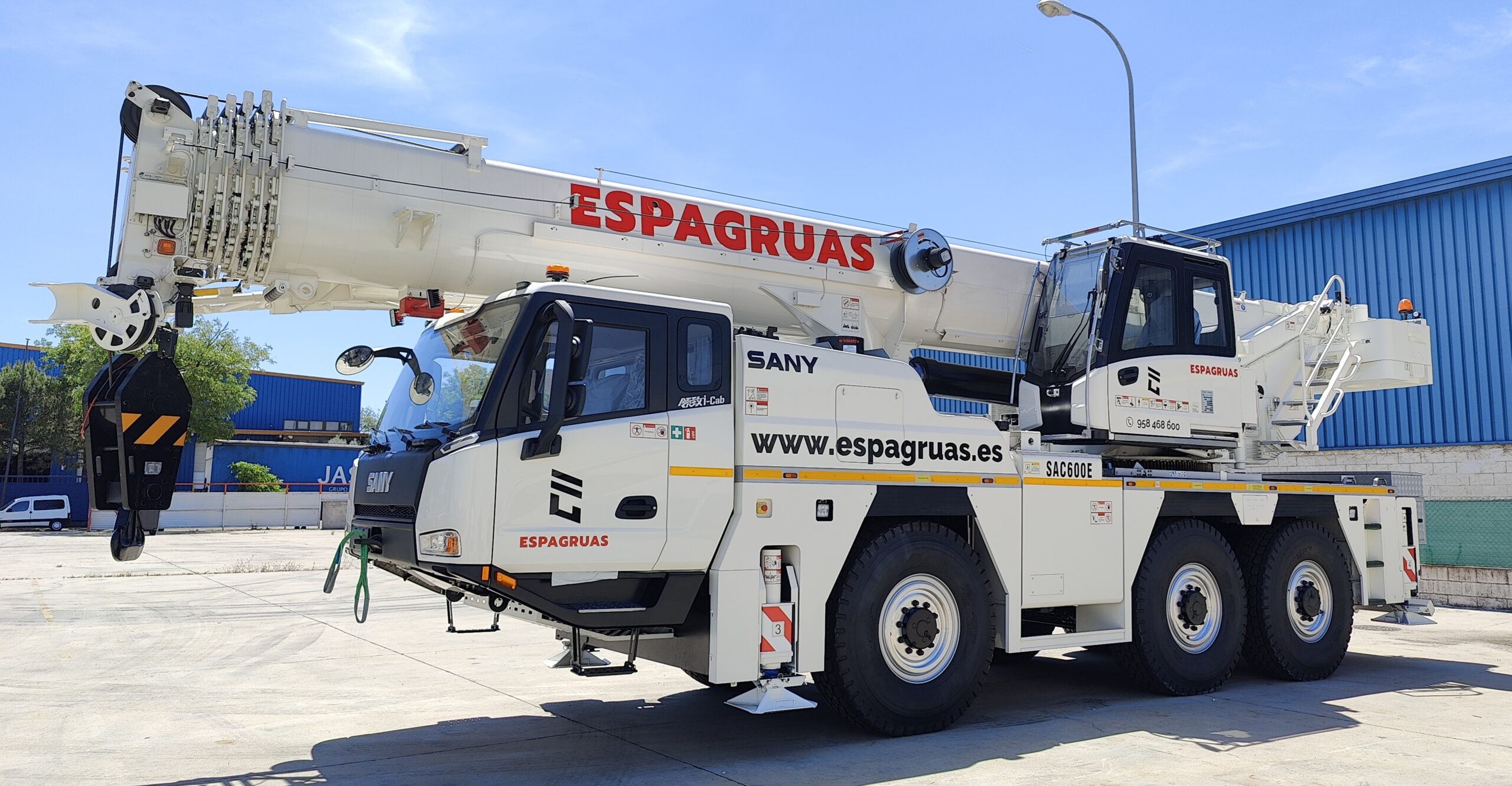 Espagrúas, compañía de referencia en el alquiler de grúas, ha confiado en el potencial de las grúas Sany, incorporando a su flota una SAC600E de 60 toneladas, distribuida en España por Grupo HEI.