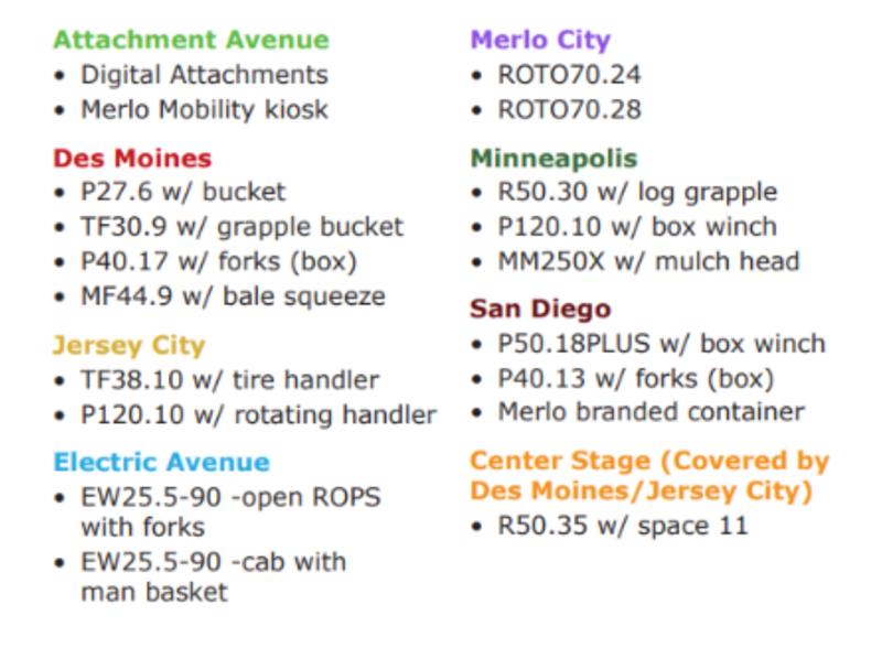 Merlo City se compone de una serie de zonas inspiradas en distintas ciudades estadounidenses, entre ellas Minneapolis, Jersey City, San Diego, Des Moines, además de Electric Avenue y Attachments Avenue. Abarcando de costa a costa el territorio de EE. UU., cada parada representa entornos operativos y retos de obra diferentes. A medida que los asistentes exploren cada “ciudad” dentro del stand de Merlo America, verán de primera mano cómo los equipos Merlo permiten operaciones más eficientes y multitarea.