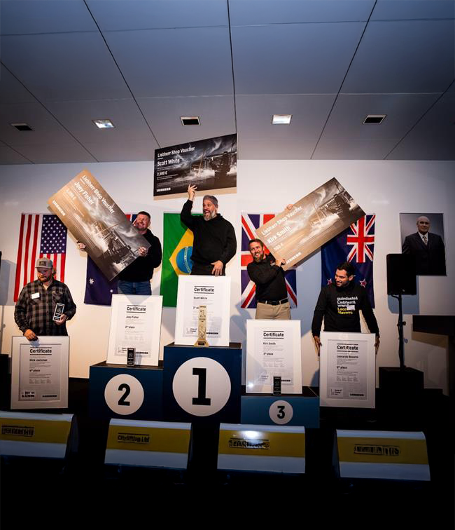 3.º puesto: Kirk Smith (Titan Cranes, Nueva Zelanda) – 811 puntos, región: África/Oriente Medio/Asia. «Ha sido una competición muy exigente, ¡y una experiencia fantástica! El espíritu deportivo de mis compañeros ha sido increíble, pero aun así he pasado algunas noches en vela», comenta Smith con una sonrisa.