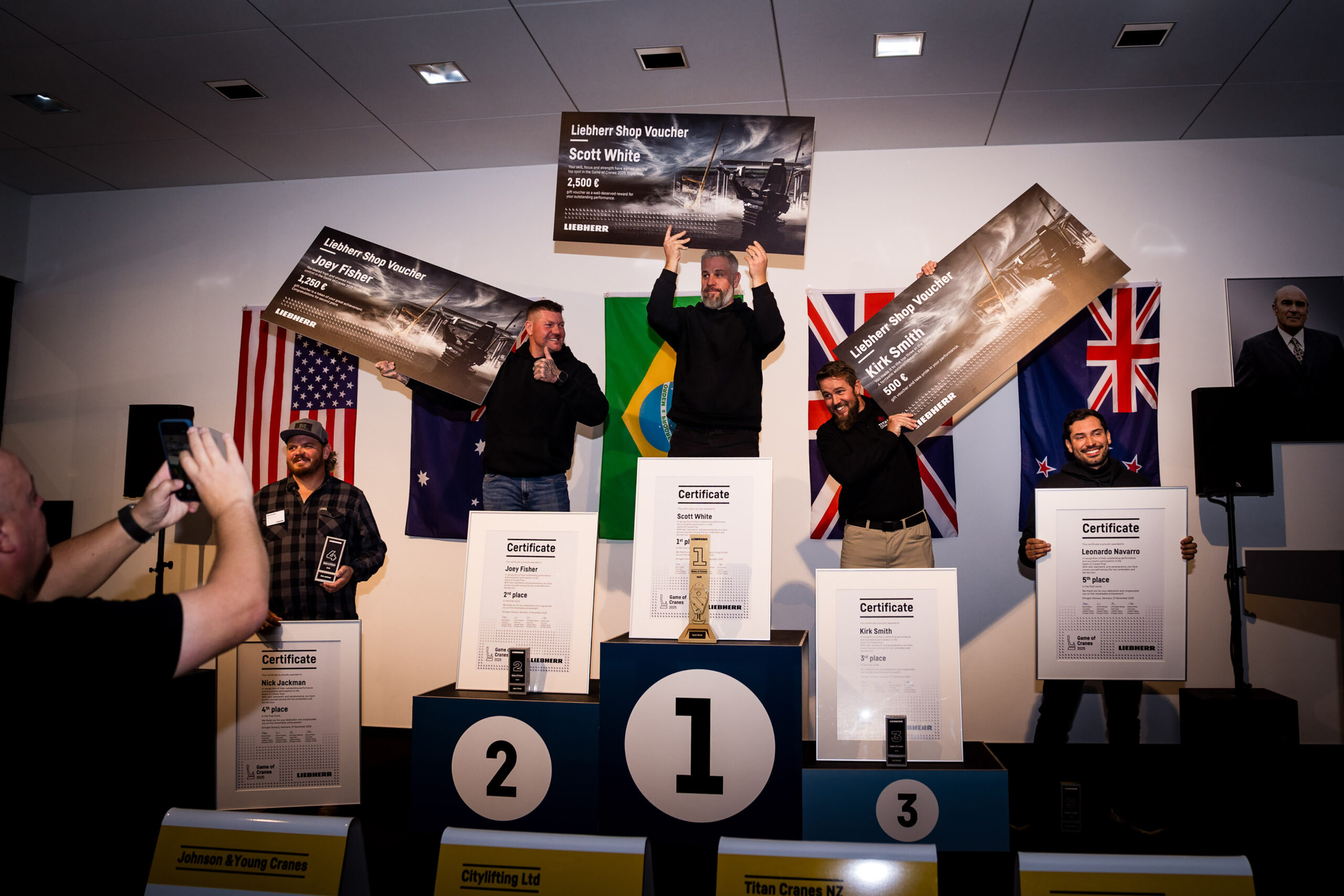 Tras dos días llenos de emoción, finalmente se decidió el ganador: Scott White, de City Lifting (Reino Unido), quien aseguró el título de «World Crane Champion» con 898 puntos. «Ha sido una competición fantástica y muy divertida. ¡Estoy encantado de haberlo conseguido! El recorrido en S fue el mayor reto, y la línea caliente fue la mejor estación», afirma White con alegría. Ya ha sido invitado a defender su título en 2027.