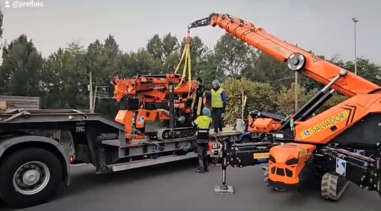 Equipos utilizados: multicargador de orugas y dos mini grúas de orugas Jekko, modelos SPX650 y SPX424 con Jib.