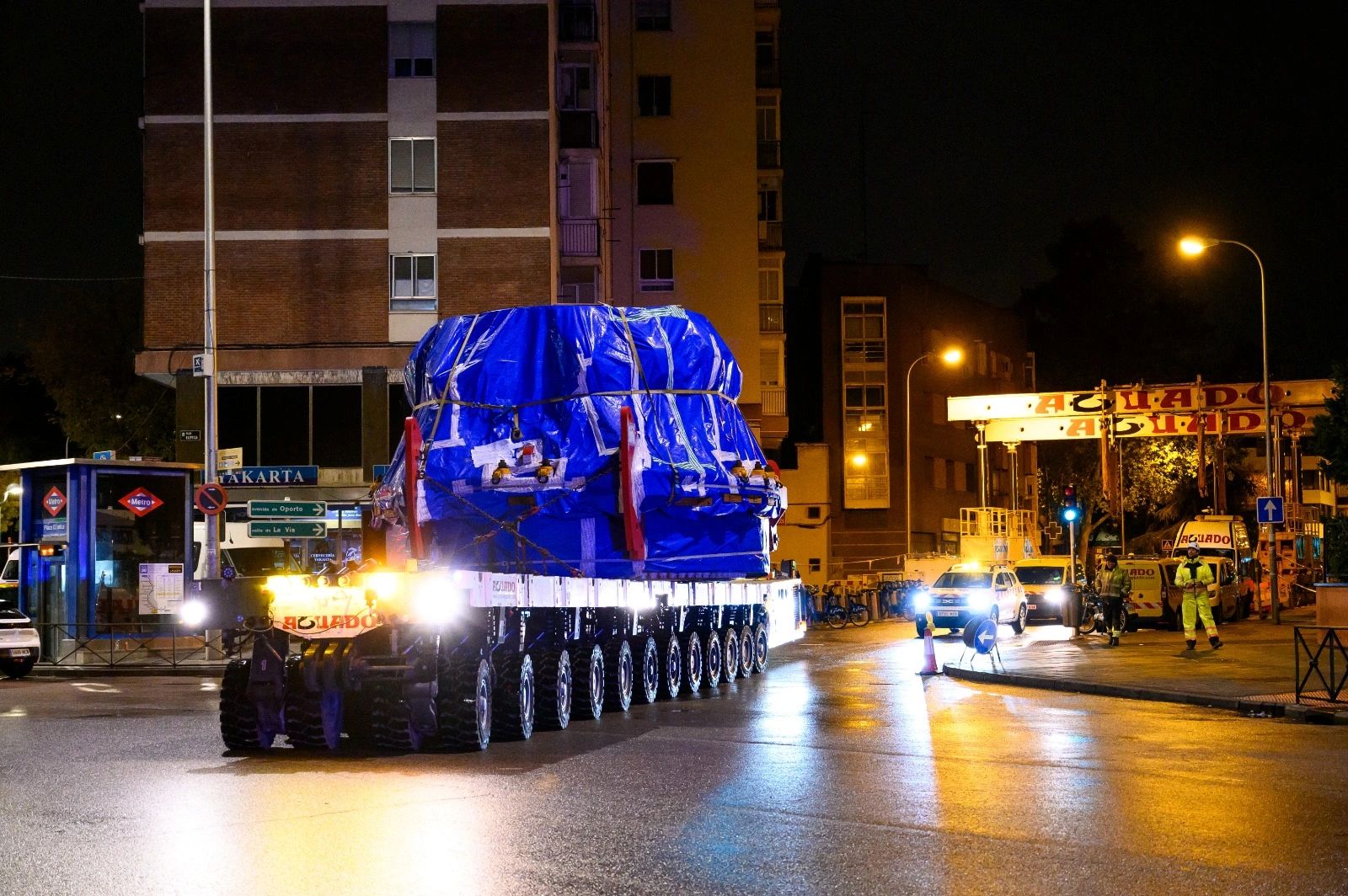 Grúas y Transportes Aguado ha ejecutado uno de los movimientos más singulares del proyecto de ampliación de la Línea 11, al trasladar el accionamiento de la tuneladora “Meyrit”, una pieza clave que alcanza un peso de 163,5 toneladas. La operación, considerada de alta complejidad, ha requerido el empleo de diversos sistemas de transporte especial de la firma Goldhofer, referencia mundial en movilidad de cargas pesadas.