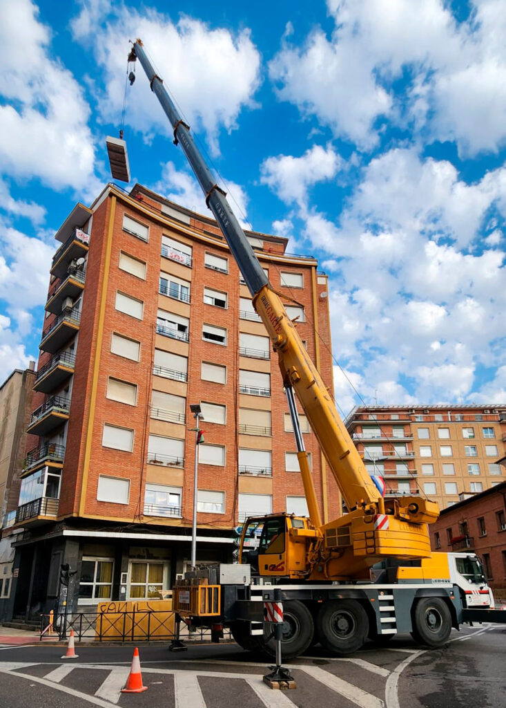 Un claro ejemplo de ello es Construcciones y Reformas BJ Murugarren, con un ámbito de trabajo centrado en Navarra y La Rioja, que subcontrató los servicios de la grúa móvil Liebherr LTM 1055-3.2 de Grúas Garte para izar material de construcción y realizar otro tipo de trabajos auxiliares, englobados en el proyecto de reforma integral de una vivienda.
