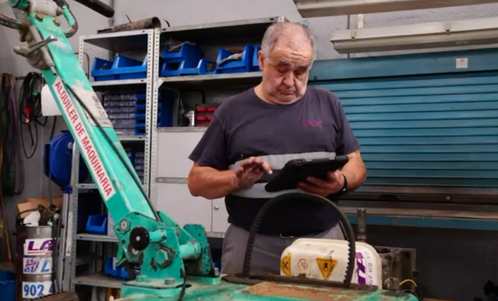 - Registro digital con tablets: Todos los mecánicos utilizan tablets para registrar mano de obra y materiales aplicados a cada máquina, lo que facilita la trazabilidad y control de costes.