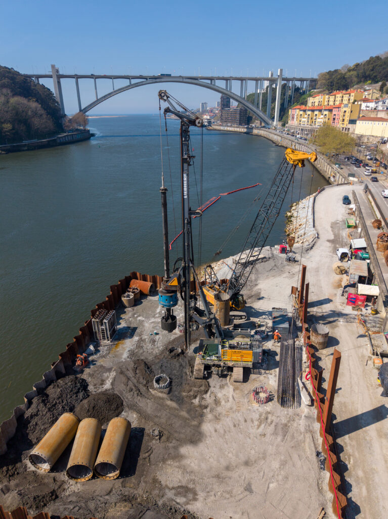 Las pilotadoras de rotación Liebherr LB 45 y LB 36 de Cimentalia están realizando la cimentación de dos pilas provisionales para el nuevo puente Ferreirinhan, integrado en la Línea Rubi del metro de Oporto, que salvará la desembocadura del río Duero y unirá dicha localidad con Vila Nova de Gaia. En concreto, se trata del tramo que conectará las estaciones de Casa Da Musica a Santo Ovidio, una actuación clave para reforzar la movilidad en la zona oeste de la ciudad. Con una inversión de más de 379 millones de euros, esta infraestructura estará reservada exclusivamente al uso peatonal, ferroviario y de ciclistas, además de que se convierte en el séptimo puente que enlazará Oporto con el otro lado del río. Por otro lado, representa la mayor acometida del Plan de Recuperación y Resiliencia en Portugal firmado hasta la fecha.