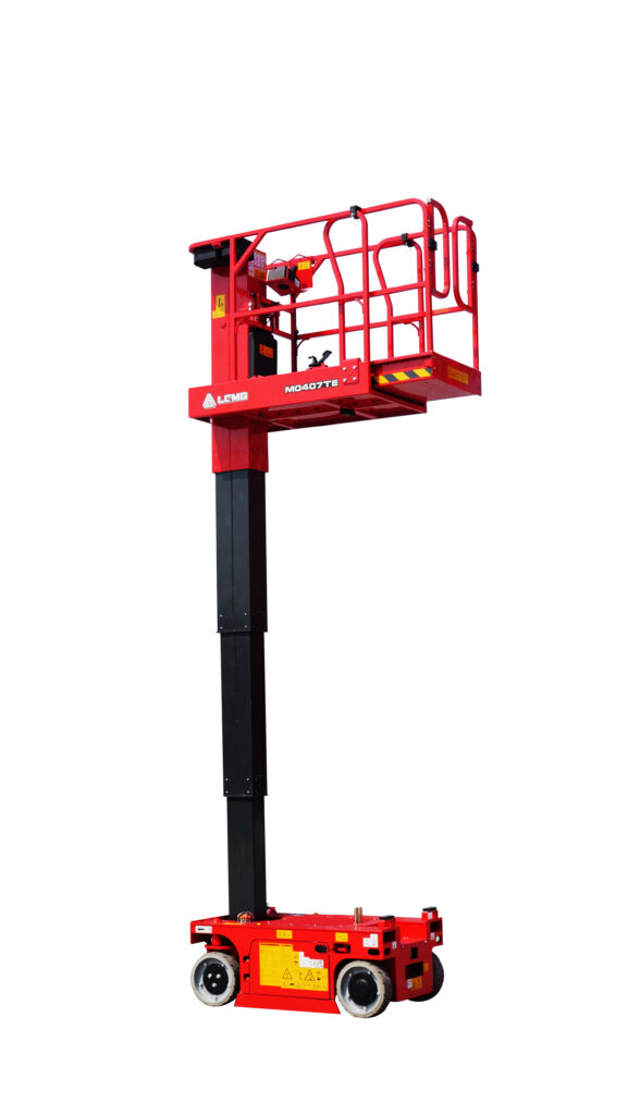 La plataforma elevadora vertical LGMG M0407TE con plataforma extensible está diseñada para ofrecer una mayor eficiencia en los espacios más reducidos. Compacta pero potente, este modelo es ideal para aplicaciones en interiores, tales como tareas de mantenimiento, comercio minorista y almacén.