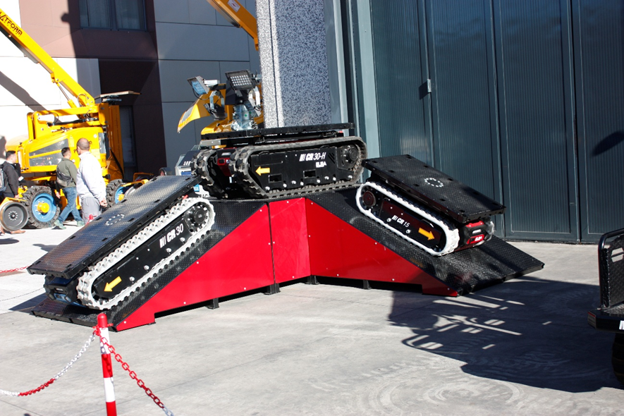 Una de las novedades más destacadas fue la nueva línea de transportadores eléctricos sobre orugas CR15, CR30 y CR30-H, con baterías modulares y capacidad de carga de entre 1,5 y 3 toneladas.