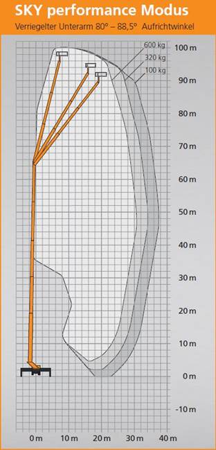 También la carga de la cesta puede preestablecerse. Por lo tanto, es posible recoger de forma segura piezas de montaje pesadas a gran altura sin poner en peligro la estabilidad de la máquina. Gracias al sistema DRS, se logra un mayor alcance y una mayor flexibilidad operativa y se ahorra un tiempo operativo muy valioso.
