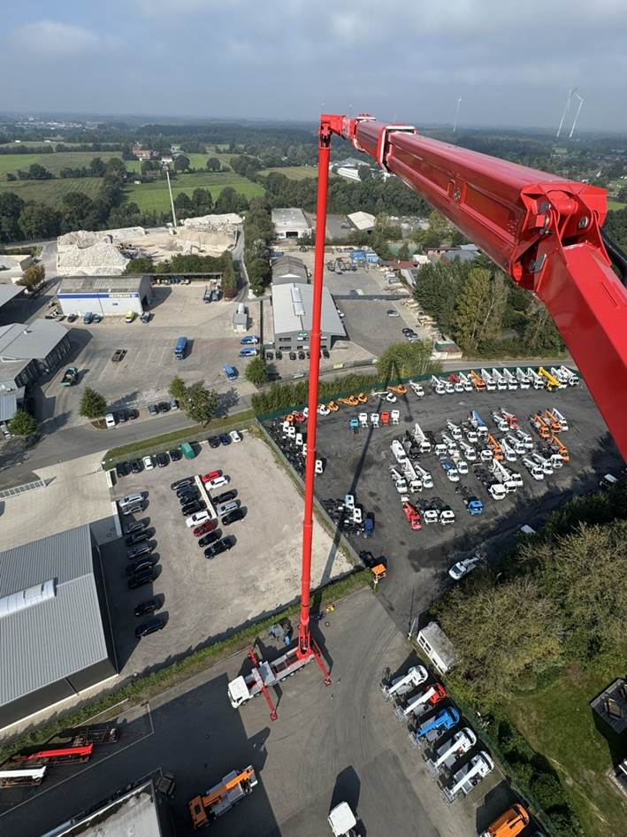 Otra ventaja: construida sobre un chasis estándar con un peso total de 53 toneladas o más, la STEIGER® T 1000 HF es unas 10 toneladas más ligera que los modelos comparables y, con una longitud total de sólo 16,35 metros, es ideal para un uso flexible en una amplia variedad de obras y proyectos.