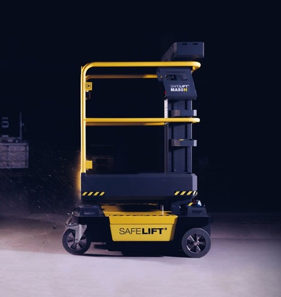 El elevador monomástil eléctrico MA50H está diseñado específicamente para un funcionamiento seguro en interiores en entornos industriales, de almacén y de construcción exigentes. Es una versión más robusta, con protección reforzada del chasis y soportes para horquillas de carretilla, lo que facilita su transporte y manejo. A pesar de su construcción reforzada, solo pesa 445 kg y puede soportar 240 kg a una altura máxima de trabajo de 5 metros, ofreciendo una combinación entre resistencia, seguridad y facilidad de uso.