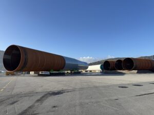 El equipo de transporte con el que se realiza la maniobra: Tractora 4 ejes + Cuello + portatubos Traylona con equipo Modular trasero 4 Ejes…