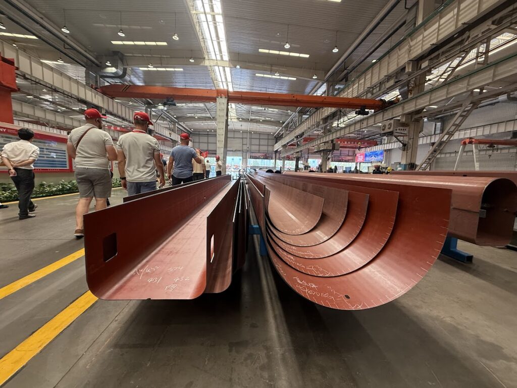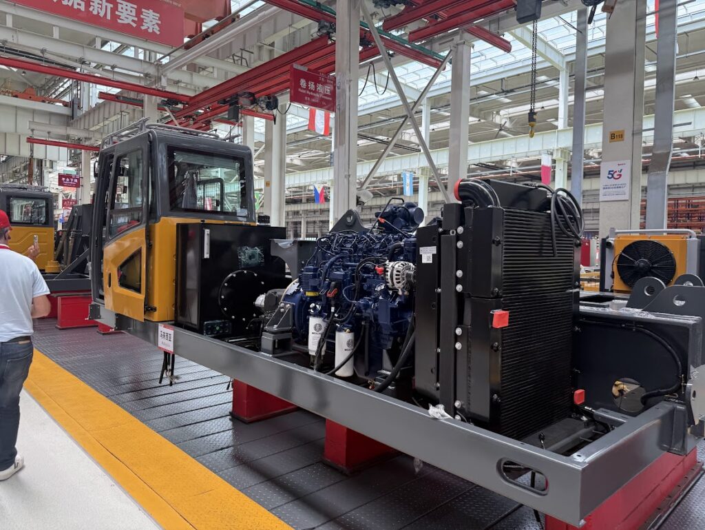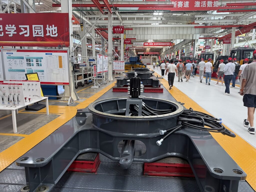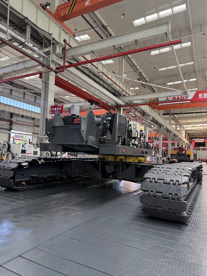 Aparte de visitar la fábrica de excavadoras, camiones, centro de formación, visitamos dos de las fábricas donde nacen las grúas Sany, las grúas sobre orugas, con una capacidad de producción de 6500 al año y el resto de grúas, cuya capacidad de producción anual asciende a 15,000.